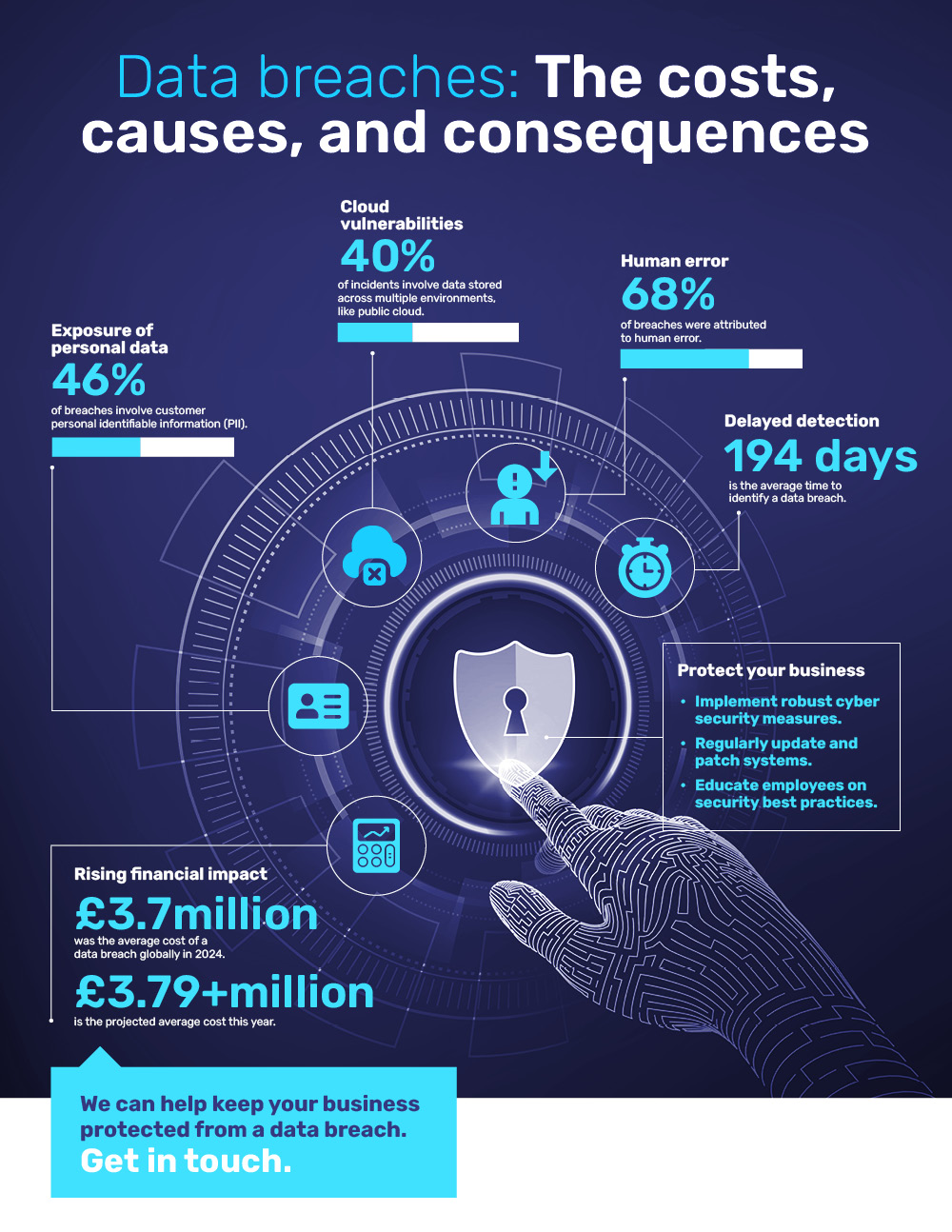 What’s really causing data breaches? And how can you protect your business before it’s too late? We can help, get in touch.